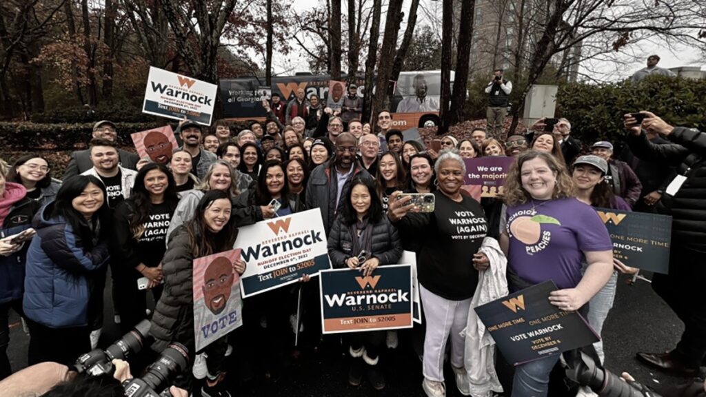En la otra esquina estaba el ahora senador electo Warnock, quien antes de ser senador era pastor en la iglesia bautista de Atlanta donde predicaba el líder afroestadounidense de los derechos civiles Martin Luther King.