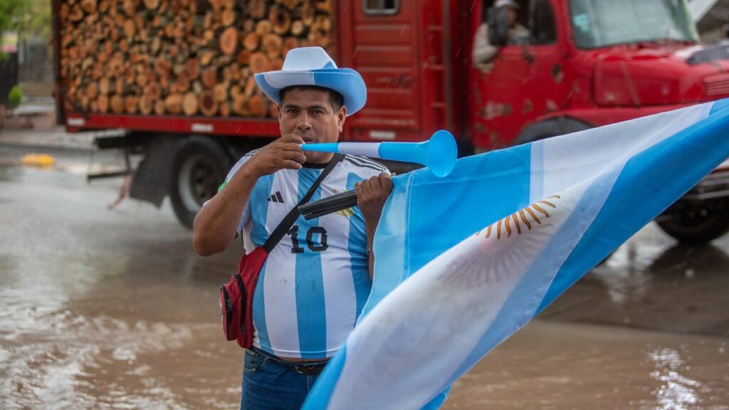 La emoción y solidaridad de un vendedor de banderas y camisetas albicelestes durante el Mundial
