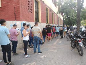 Largas filas de personas se encontraban esta mañana esperando en la puerta de La Liga Tucumana de fútbol con el fin de comprar las entradas para el partido de mañana, a las 21 horas, entre Atlético y River en el Monumental Jose Fierro.